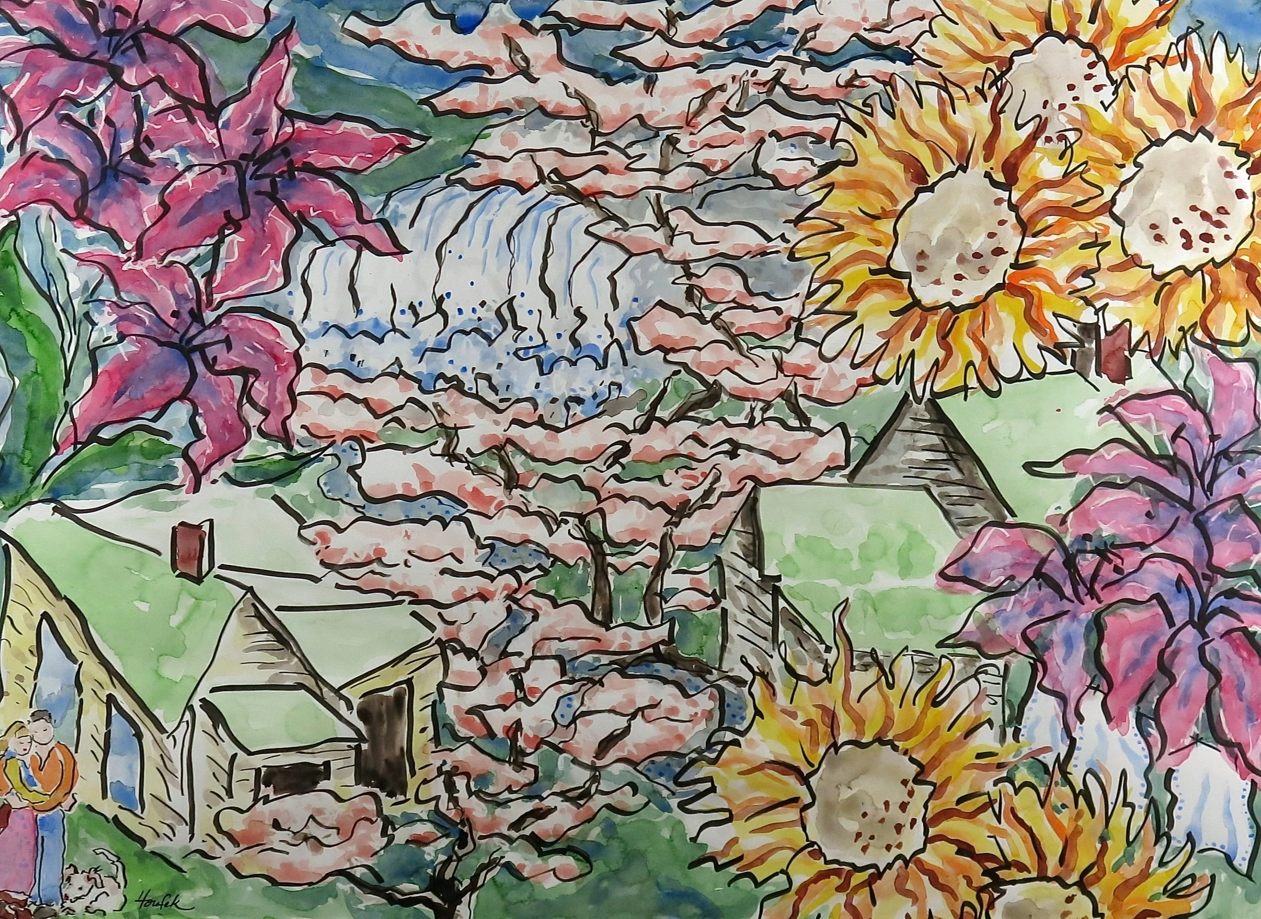 -- "Garden Riot", opened Tuesday, Aug. 1, 2017 at the Windermere Realty Gallery, 315 Oak Street, Hood River, OR. The show ran through the end of August. Large paintings from the Portland International Airport show were on display as well as a variety of small works. And two paintings SOLD!