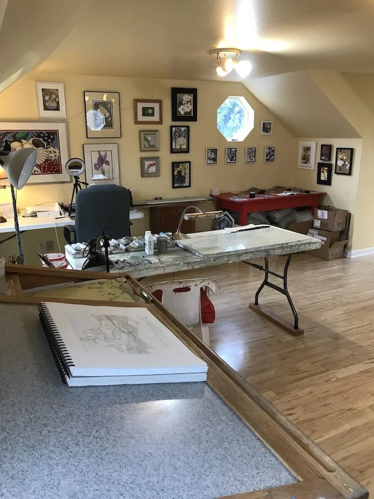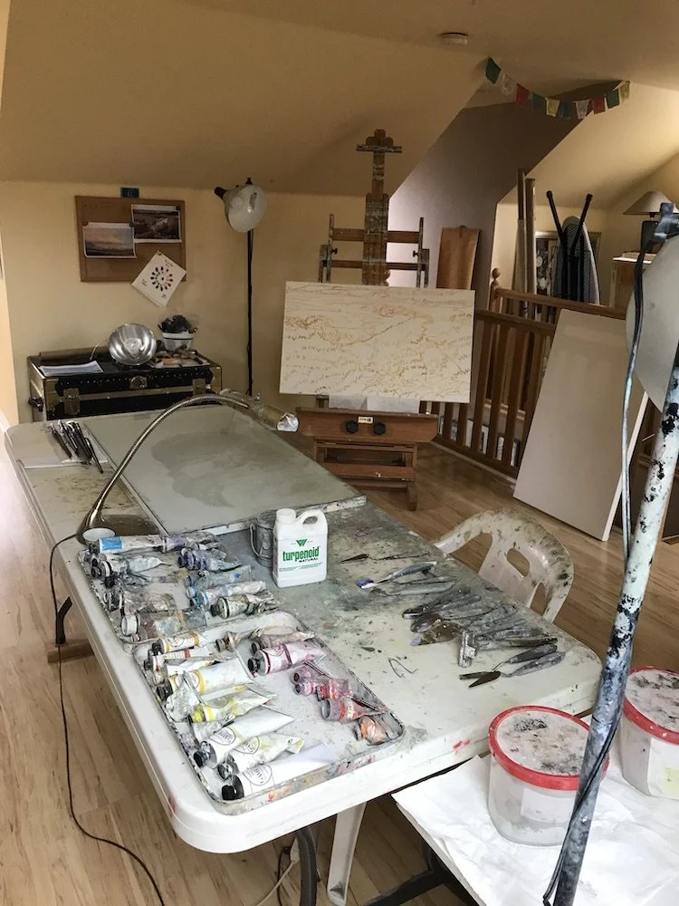 — The Gorge Artists Open Studios Tour was held on April 21, 22, and 23, 2023 from 10:00 - 5:00 p.m. each day. I was one of forty regional artists selected to participate, and over a hundred and fifty art lovers came to my studio. Here are a few images of how my place looked.